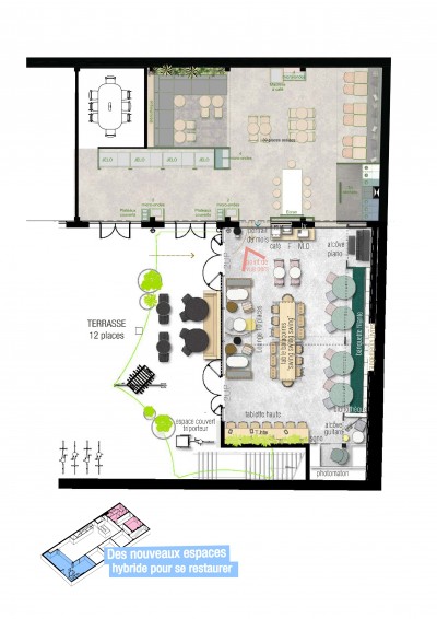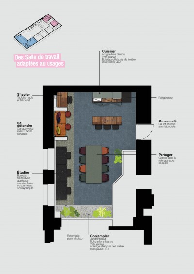 Rénovation, Établissement scolaire, Espace de restauration, Intérieur, Espace de travail