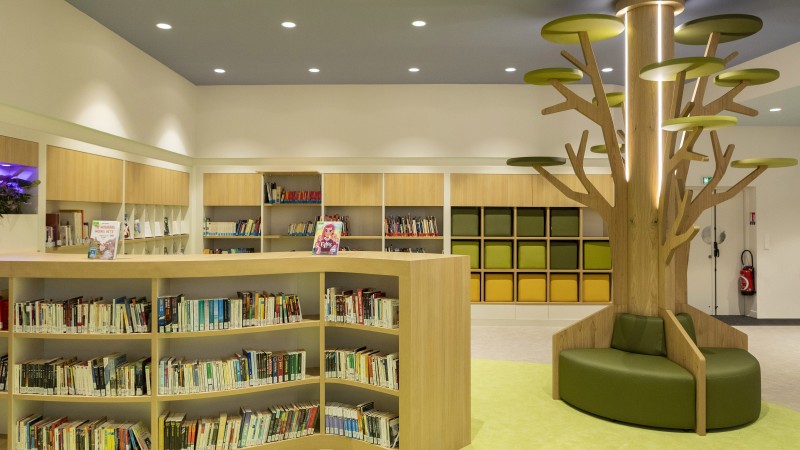 espace très haut sous plafond, l’enjeu est de recréer un espace à échelle de l’écolier.